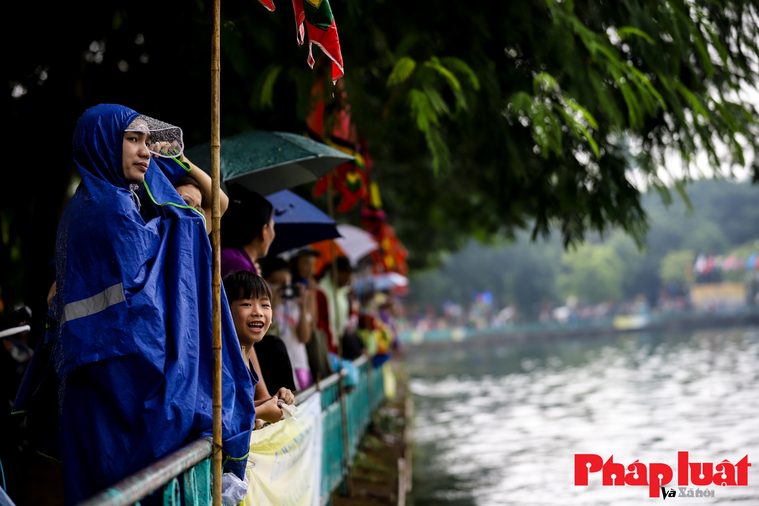 Người Hà Nội đội mưa xem Bơi chải thuyền rồng trên Hồ Tây