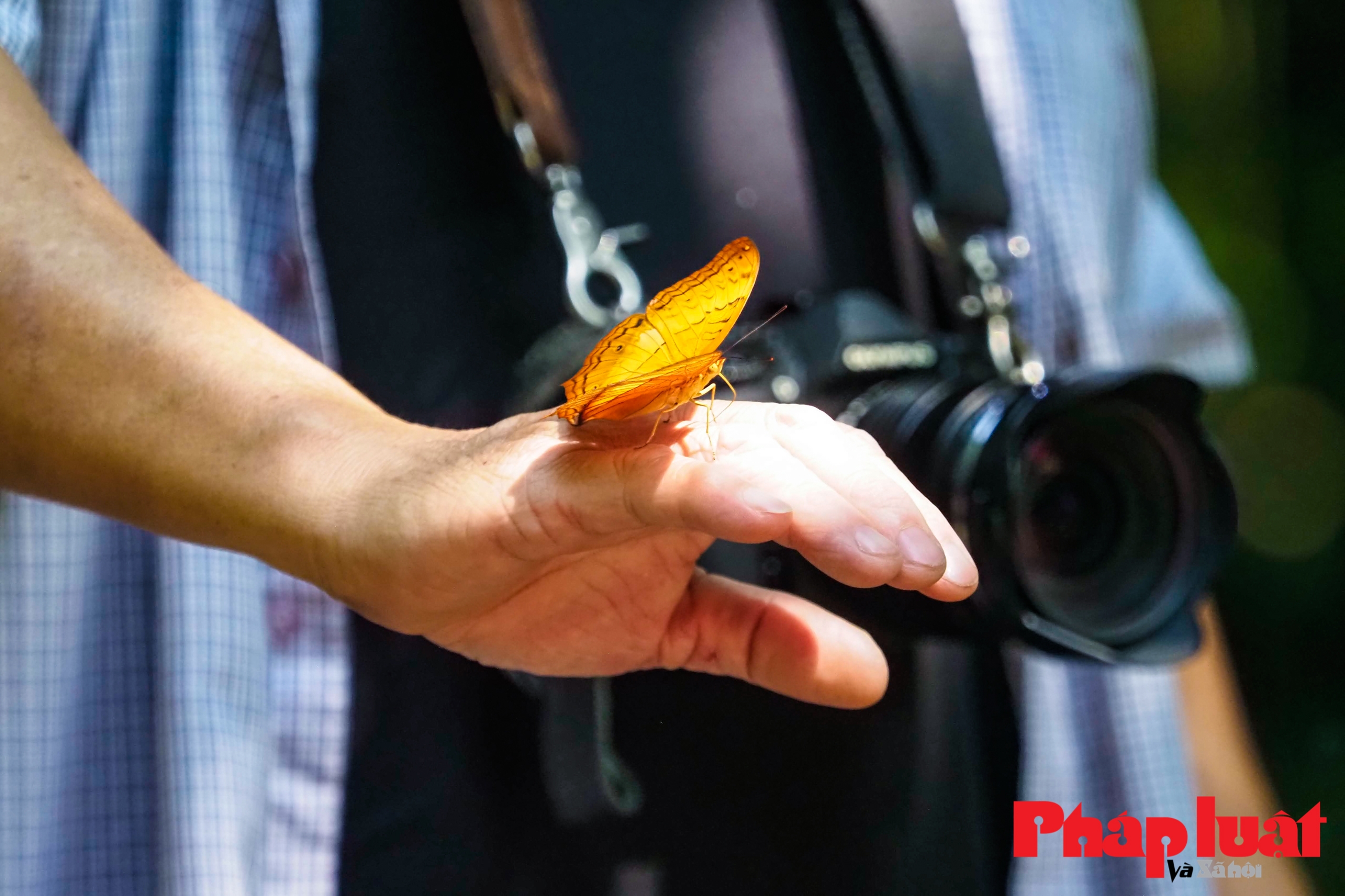 | Những chú bướm rừng Cúc Phương không ngần ngại đậu lên tay, lên vai, lên đầu của những du khách. |
