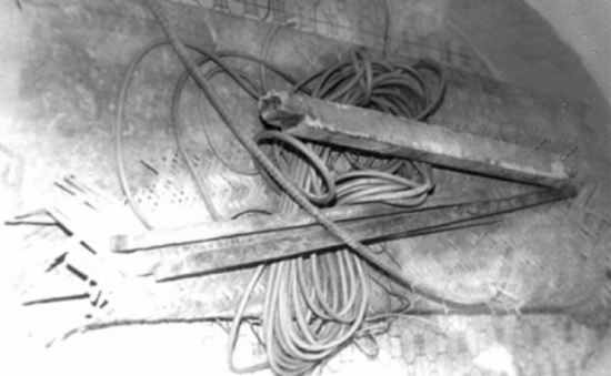 Một phần mũi ghe và sợi dây thừng trói nạn nhân. Ảnh tư liệu