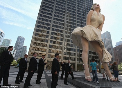 Bức tượng cao 8 met tái hiện hình ảnh Marilyn Monroe được khai trương ở Chicago hôm 15/7.