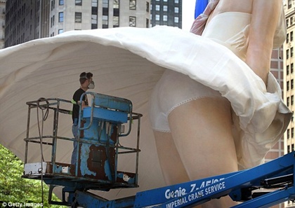 Được biết, bức tượng cao gần 8 met này là công trình nghệ thuật của nghệ sĩ Seward Johnson. Trong đó, nghệ sĩ Seward Johnson tái hiện hình ảnh nổi tiếng của nữ diễn viên Marilyn Monroe tại ga tàu điện trong bộ phim The Seven Year Itch, thực hiện vào năm 1955. Trong cảnh này, nữ diễn viên huyền thoại đã đưa tay giữ chiếc váy trắng khỏi bị tốc lên bởi một cơn gió “nghịch ngợm”, cảnh quay này được đánh giá rất gợi cảm và nổi tiếng sau đó.