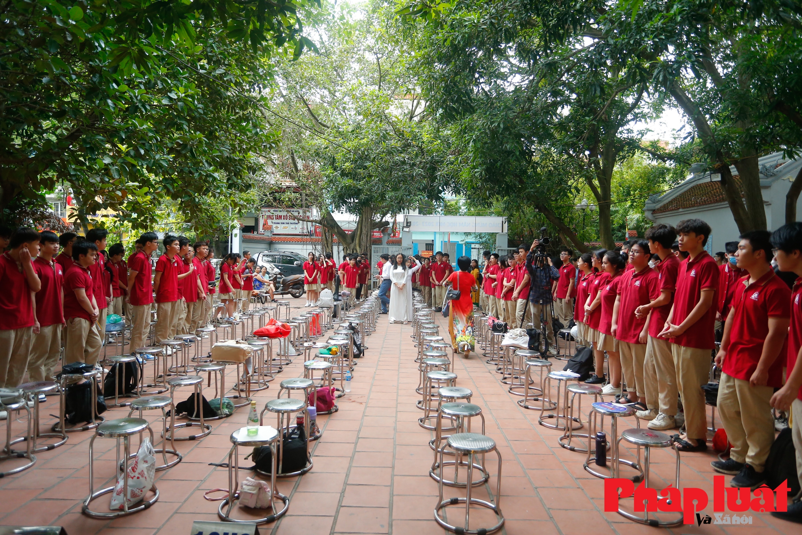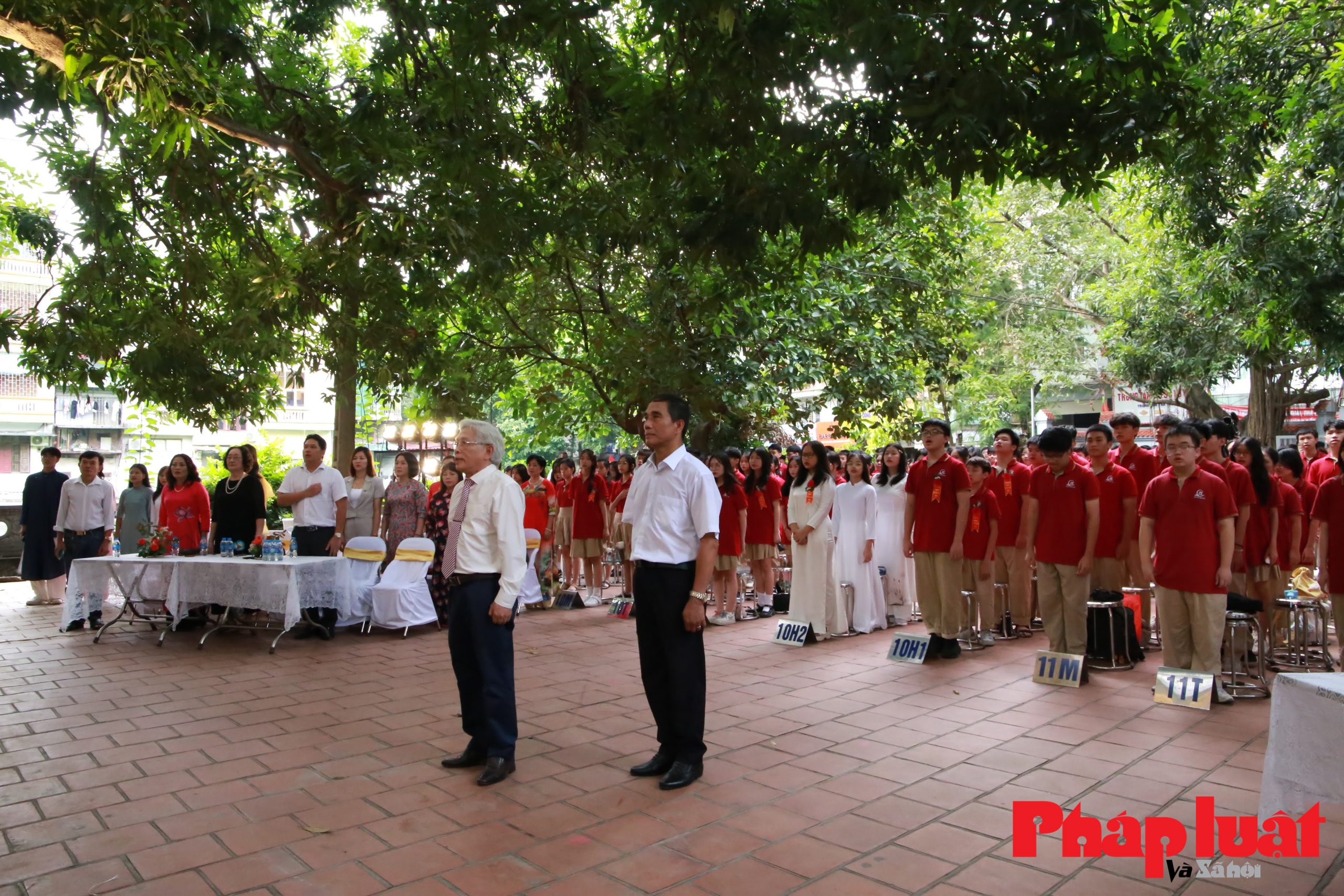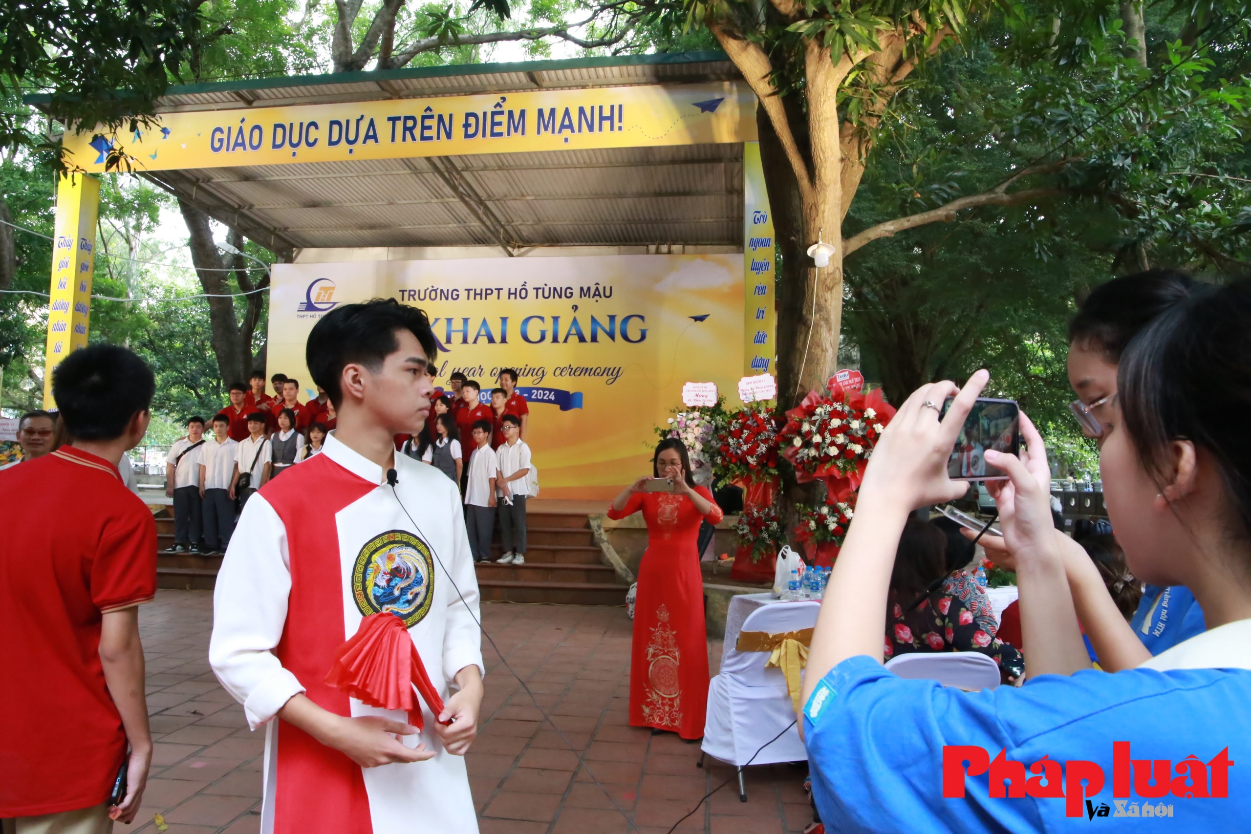 | Không khí ngày tựu trường của trường THPT Hồ Tùng Mậu trở nên ý nghĩa hơn khi được tổ chức tại sân đình rợp bóng cây xanh. Các học sinh được nghe kể và được vun đắp thêm về lịch sử dân tộc và lòng yêu nước. |