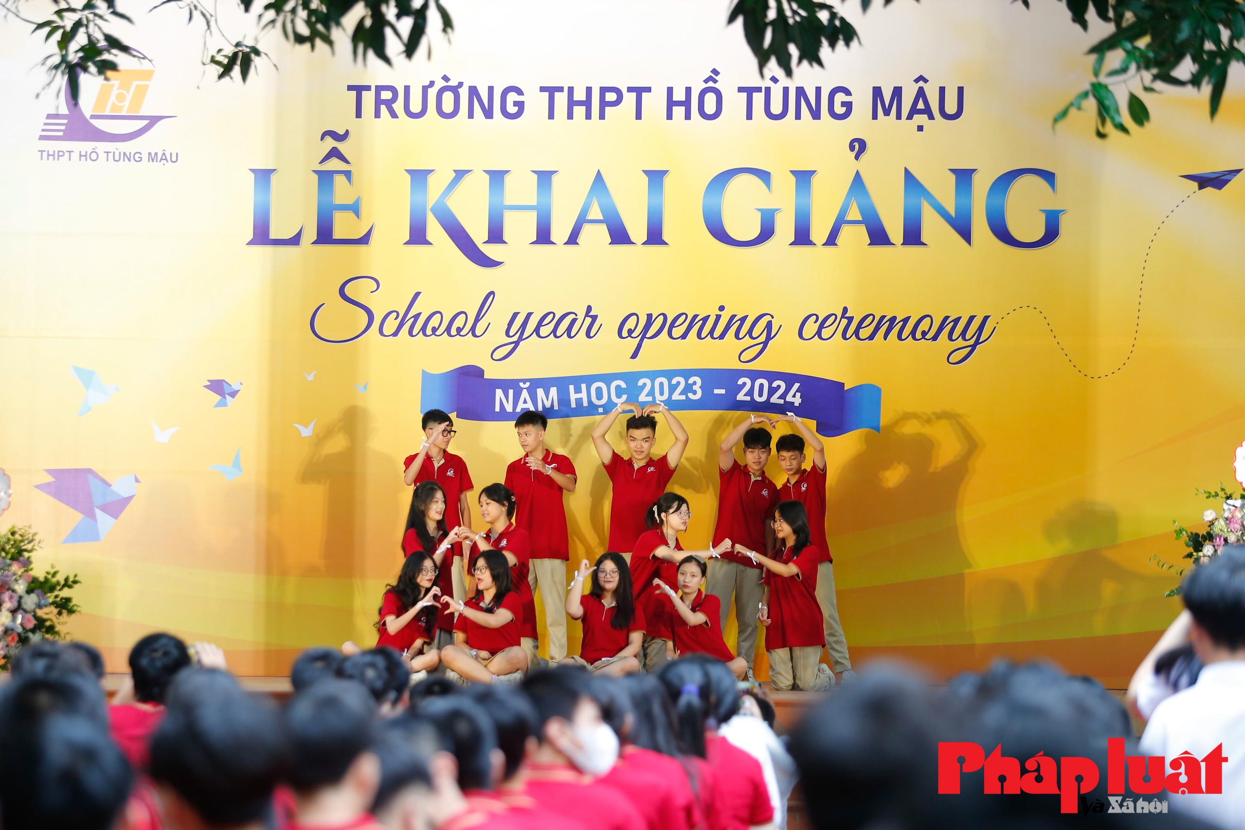| Các học sinh trường THPT Hồ Tùng Mậu hân hoan, vui tươi trong ngày lễ khai giảng đầy ý nghĩa. |