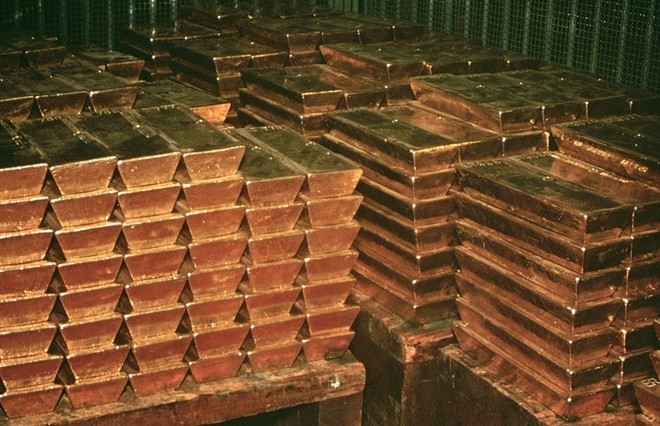 Trung bình mỗi thanh vàng nặng 400 ounce. Một tấn vàng tương đương 80 thanh. Ảnh: Business Insider