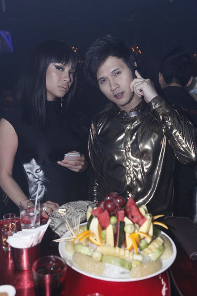 Tiệc mừng sinh nhật Chung Thục Quyên diễn ra tối 18-10 tại TP HCM. Nhiều nghệ sĩ, bạn bè thân thiết cùng ba mẹ, người thân trong gia đình có mặt để chúc mừng người đẹp, trong đó có ca sĩ Ưng Hoàng Phúc (phải). Tuy vậy, người bạn trai Việt kiều luôn gắn bó với cô là Phillip lại vắng mặt trong dịp vui này.