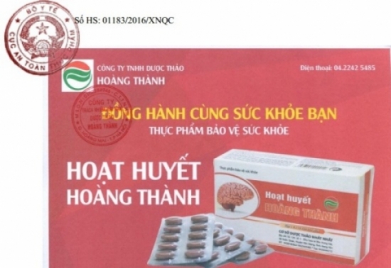 Xin nhắc lại rằng, “Thực phẩm bảo vệ sức khỏe - Hoạt huyết Hoàng Thành” được sản xuất theo giấy chứng nhận công bố phù hợp quy định ATTP số 30450/2015/ATTP - XNCB do Cục An toàn thực phẩm cấp ngày 20/11/2015. Có nghĩa đây là thực phẩm bảo vệ sức khỏe (không phải là thuốc).