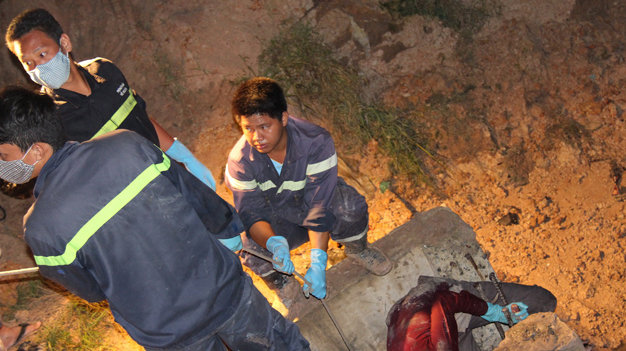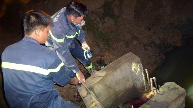 | Chuẩn bị xuống cống đưa thi thể cháu Tỷ lên |