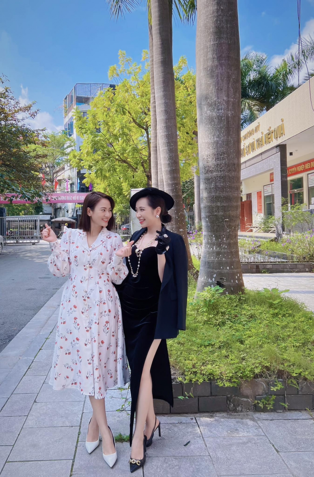 | Ngoài đời, Kim Oanh (phải) mặc những thiết kế khoe vẻ đẹp gợi cảm |