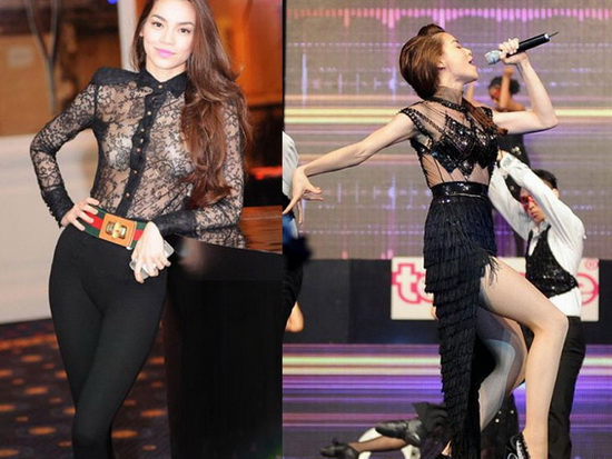 Bà mẹ một con được nhiều người ngưỡng mộ khi sở hữu một bộ sưu tập váy áo xuyên thấu hàng hiệu khi cô xuất hiện trước công chúng. Dù trên sân khấu hay đi sự kiện, khán giả đều dễ dàng bắt gặp Hồ Ngọc Hà khoe vẻ đẹp sexy với áo voan mỏng manh.
