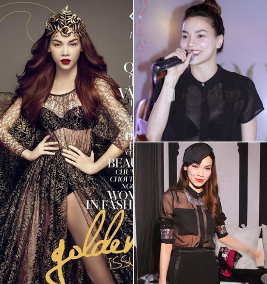 Trên bìa một tạp chí thời trang, nữ ca sĩ chân dài hóa thân thành nữ hoàng sexy và quyền lực. Đặc biệt, Hà Hồ diện mẫu váy thậm chí còn táo bạo gấp bội phần chiếc váy Hồng Quế xuất hiện trên thảm đỏ. Với chất liệu ren mỏng tang, trong suốt, đường xẻ tà dài từ bụng xuống chân, toàn bộ nội y đen “lộ thiên", Hồ Ngọc Hà tự tin chứng tỏ đẳng cấp và gu thời trang có thẩm mĩ.