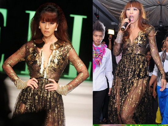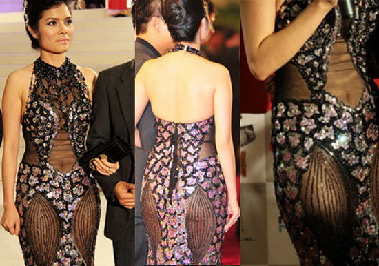 Tuy nhiên, đã có lần Thùy Dung gặp “tai nạn” thời trang khi diện bộ váy xuyên thấu bị coi là phản cảm.