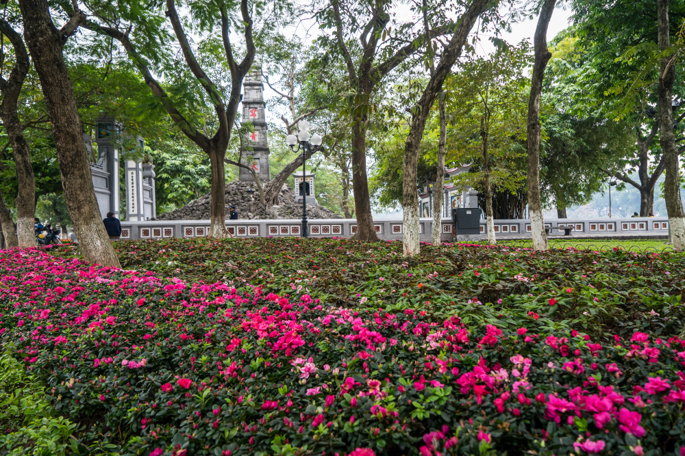 Cánh đồng hoa muôn sắc màu bên ngoài khuôn viên đền Ngọc Sơn.