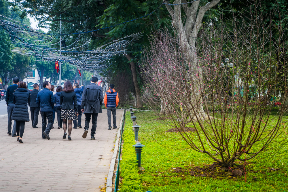 Sắc xuân rực rỡ hoà chung với không khí náo nhiệt ngày giáp Tết tại quảng trường Đông Kinh Nghĩa Thục.