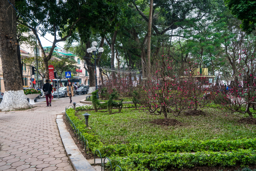 Hoa đào nối dài tạo nên không khí rất “xuân” cho Hà Nội.