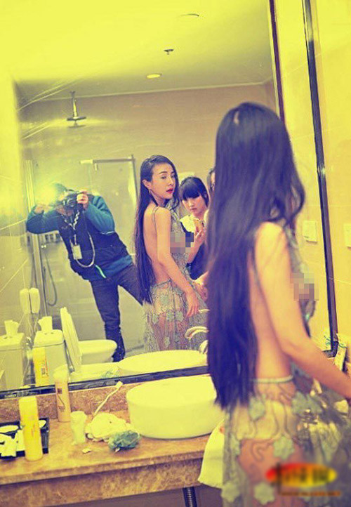 Ảnh hậu trường buổi chụp hình khoe ngực của Can Lộ Lộ và em gái Can Mao Mao.