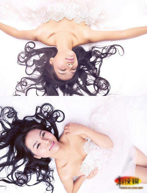 Loạt hình này cho thấy toàn cảnh quá trình mỹ nhân 8X và cô em gái Can Mao Mao "tác nghiệp" với thân hình khêu gợi. Nhìn ảnh có thể thấy cả hai đều diện trang phục mỏng manh khoe đôi gò bồng căng đầy. Tuy họ mới gia nhập làng giải trí, nhưng em gái Can Lộ Lộ còn táo bạo hơn cả chị khi dùng tay che ngực, không cần một mảnh vải nào hỗ trợ.