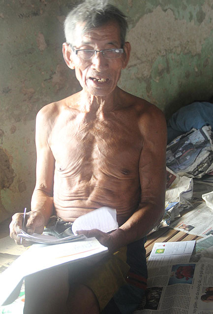 Ngồi trên giường với vô thứ ngổn ngang, ông Hộ đang cặm cụi chơi trò Sudoku trên báo. Biết có người lạ vào nhà, nhưng ông vẫn không ngẩng lên. Tôi hỏi: "Ông đang làm gì", ông nói: "Đang chơi Sudoku". Tôi lại hỏi: "Báo ở đâu có mà bác chơi vậy?", ông trả lời: "Tui với chị Tư hàng xóm ngày nào cũng chung mỗi người hai nghìn để mua rồi cùng đọc chung". "Thế có khi nào bác giải ra ô chữ chưa mà tìm say sưa vậy?", tôi hỏi tiếp. "Nhiều rồi chứ", ông lại trả lời!. "Thế họ có gửi quà về cho bác lần nào chưa?", ông cười mà rằng: "Chơi cho vui thôi, quà cáp làm gì".