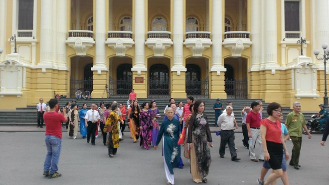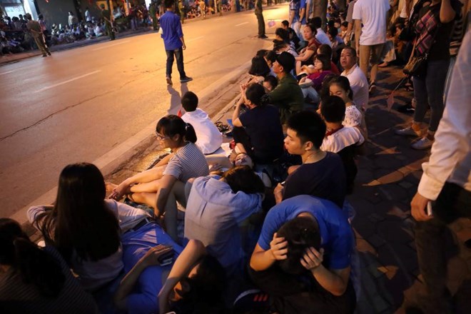 Khu vực Hồ Gươm lúc 5 giờ 30, ai nấy đều phấn khởi đếm ngược tới giờ diễu binh. -