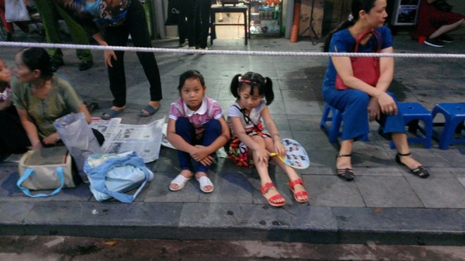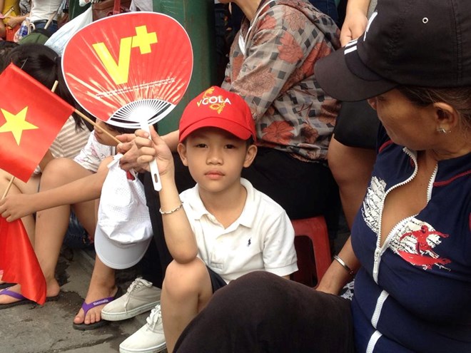 Gương mặt các em nhỏ rạng rỡ xen lẫn hồi hộp (Ảnh: Sơn Bách-Việt Phương)5h sáng, trên dọc các trục đường mà đoàn diễu hành sẽ đi qua, hàng nghìn người đa tập trung sẵn trên các vỉa hè. Nhiều người thậm chí đã ngủ qua đêm tại đây, hoặc thức luôn tới sáng để chờ đến giây phút đoàn diễu binh, diễu hành đi qua.
