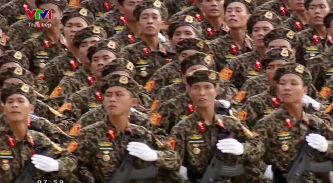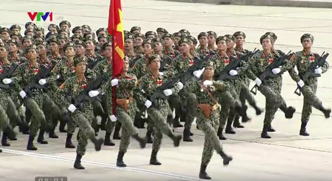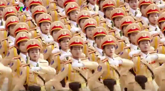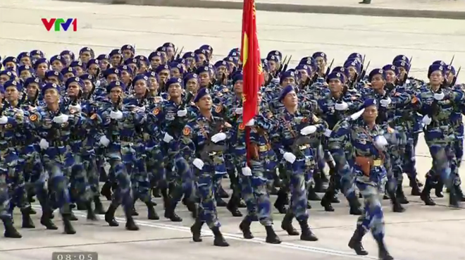 Theo sau là các khối Quân kỳ, Quân nhạc, Tham mưu, Hậu cần... -