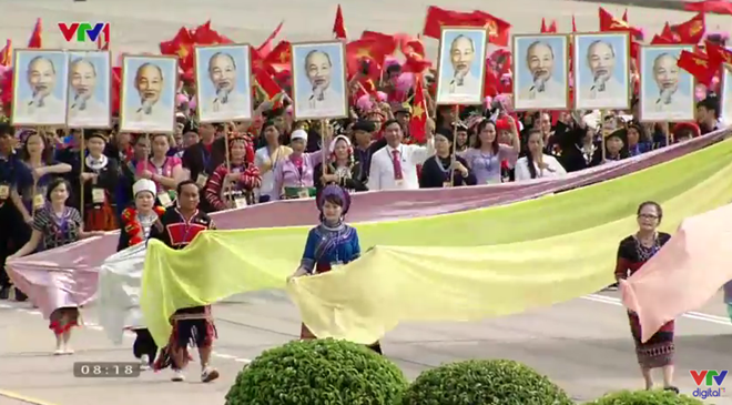 Tiếp theo là khối Cờ đỏ, gồm cờ Tổ quốc và cờ Đảng kiêu hãnh tiến qua lễ đài, thể hiện ý chí khát vọng xây dựng Chủ nghĩa Xã hội ở Việt Nam. -