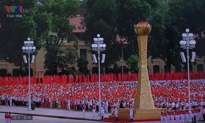 Ngọn đuốc chất chứa bao khát khao, hy vọng của người dân Việt Nam trên Quảng trường Ba Đình lịch sử. -