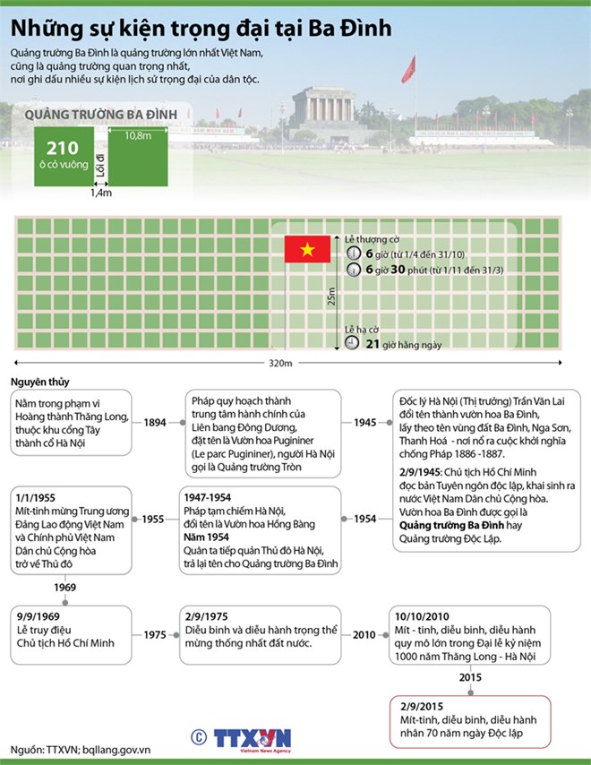 Trước thời khắc thiêng liêng của lịch sử, hãy cùng VietnamPlus nhìn lại những mốc son hào hùng của dân tộc trong 70 năm qua, kể từ ngày 2/9/1945, khi Chủ tịch Hồ Chí Minh đọc Tuyên ngôn Độc lập tại Quảng trường Ba Đình, khai sinh ra nước Việt Nam Dân chủ Cộng hòa. -