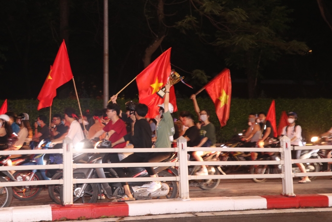 | Khi tiếng còi kết thúc 90 phút thi đấu trận Chung kết môn bóng đá nam giữa đội tuyển U23 Việt Nam và U23 Thái Lan vang lên, cũng là lúc hàng triệu cổ động viên vỡ oà trong niềm vui chiến thắng. Đó cũng là lúc các cổ động viên đổ ra các ngả đường để ăn mừng chiến thắng "kép" của bóng đá Việt Nam tại SEA Games 31, khi cả 2 đội tuyển bóng đá nam và nữ của chúng ta đều giành tấm HCV SEA Games lịch sử trên sân nhà. |