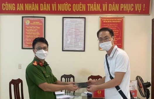 | Công an phường Hàng Trống trao trả tài sản cho chị Phương Linh |