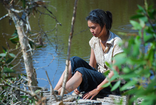 | "Đả nữ" Ngô Thanh Vân hóa thân thành cô gái nghèo ở một vùng quê trong phim ngắn Hành trình. |