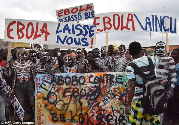 Người dân Bờ Biển Ngà biểu tình, mong chính phủ có những biện pháp mạnh mẽ ngăn chặn dịch bệnh khi Ebola bùng phát nghiêm trọng.