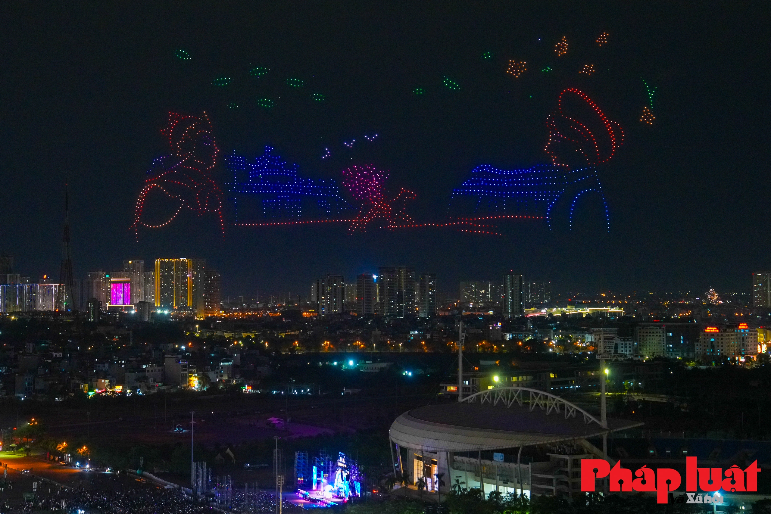 | Khoảng 20h10, những hình ảnh đầu tiên về buổi trình diễn Drone xuất hiện trên bầu trời Hà Nội, cụ thể tại sân vận động Quốc gia Mỹ Đình. |