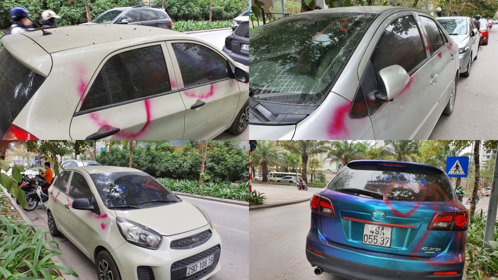 Đang làm rõ vụ xe ô tô đỗ ven đường bị xịt sơn ở Hà Nội