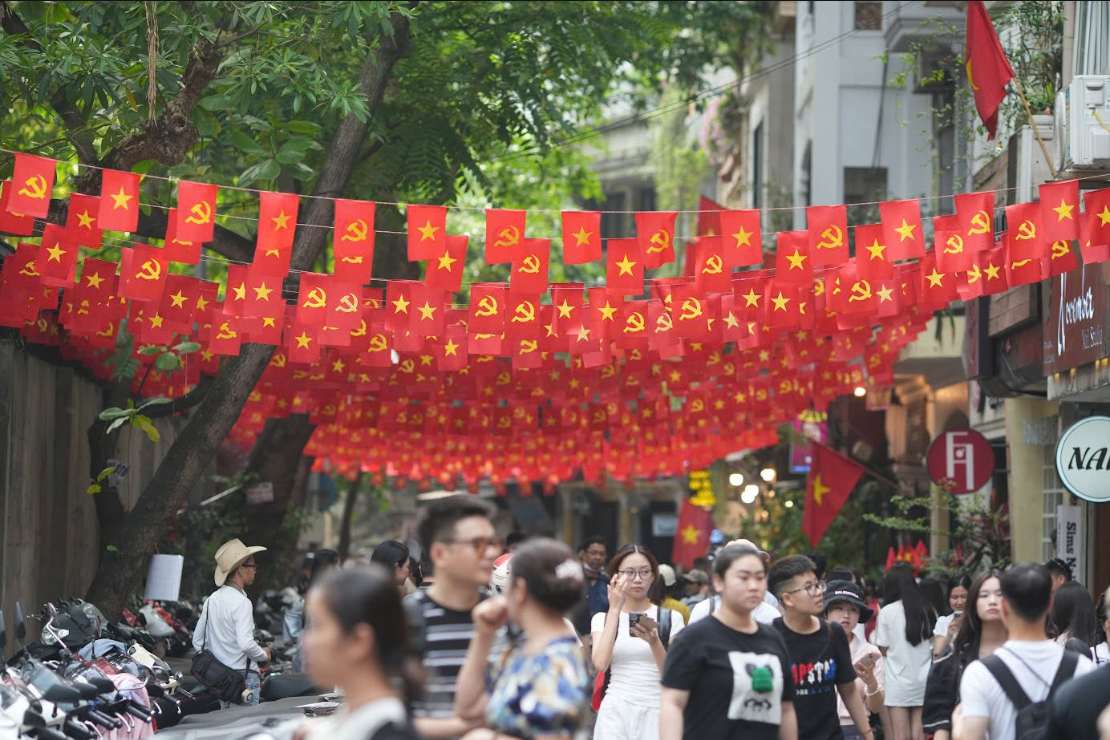 | Màu áo cờ Tổ quốc tràn ngập không gian phố đi bộ trong ngày lễ trọng đại của dân tộc. |