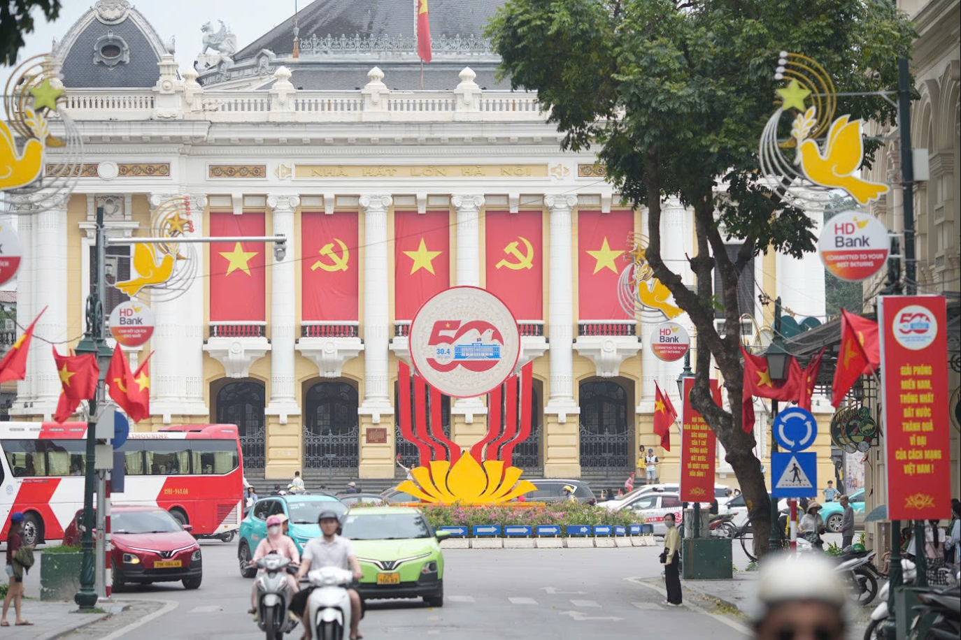 Hòa chung không khí kỷ niệm 50 năm Ngày Giải phóng miền Nam, thống nhất đất nước, phố đi bộ hồ Hoàn Kiếm và phụ cận được UBND quận Hoàn Kiếm tổ chức trang trí nổi bật, mang đến không gian ngập tràn tinh thần dân tộc, khơi dậy tình yêu quê hương, đất nước.