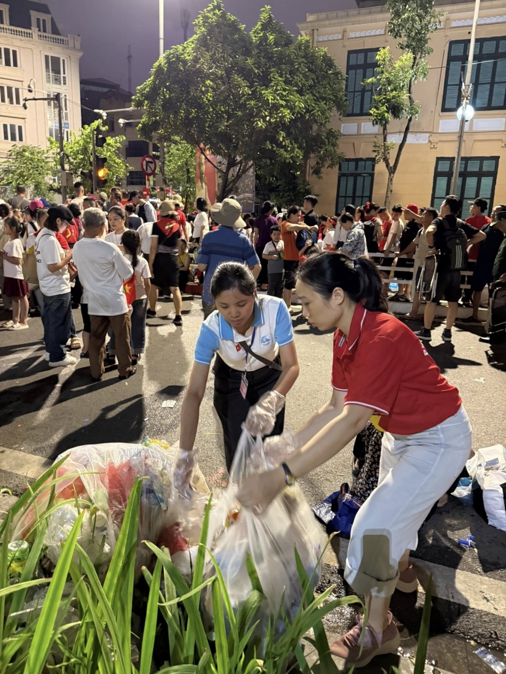 Sau khi kết thúc chương trình tổng hợp luyện, cán bộ, phụ nữ cùng người dân địa phương không quên nhiệm vụ bảo vệ môi trường, tích cực thu gom rác tại khu vực Quảng trường Ba Đình và các tuyến phố lân cận. Hành động này góp phần giữ gìn Thủ đô luôn xanh - sạch - đẹp, thể hiện nét thanh lịch, văn minh vốn có của người Hà Nội.