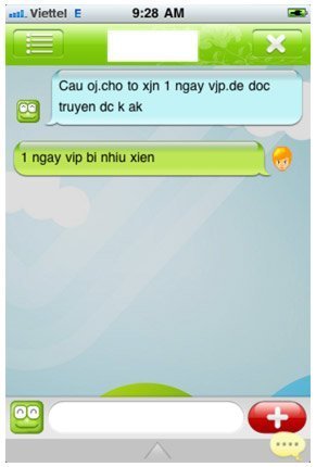 Một nick là …girl9x chat với PV VietNamNet, câu đầu tiên là “Cậu ơi, cho tớ xin một ngày vip để đọc truyện được không?”. PV không hiểu một ngày vip giá bao nhiêu tiền, nên hỏi lại, và được trả lời. Tuy vậy, chỉ vài phút sau, nick chat này đã nói cảm ơn, không cần nữa, vì đã có người khác cho.