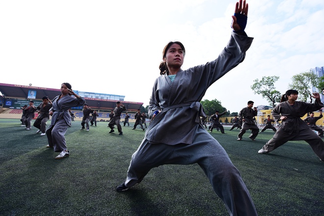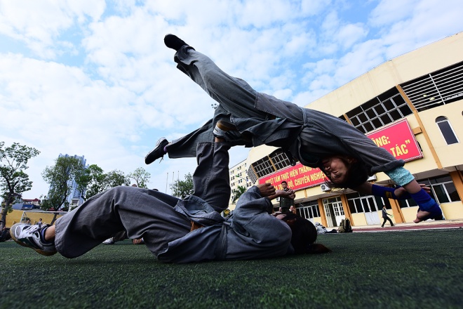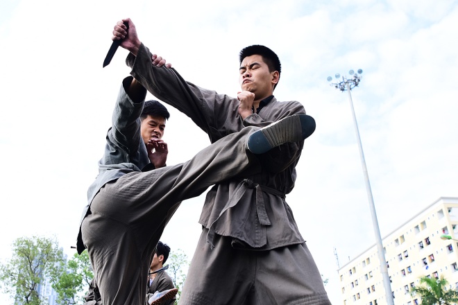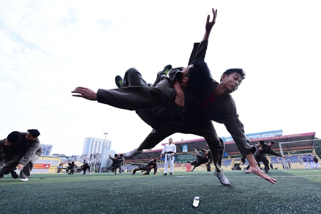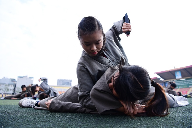 "Cầm dao đâm thẳng hay Judo ngã ngửa đạp hạ bộ đều yêu cầu thể lực rất khỏe, động tác nhanh, mạnh, dứt khoát. Bị bạn nam quật ngã xuống đất rất đau khiến nhiều lúc sợ em chẳng dám đi học môn này", nữ sinh Như nói.