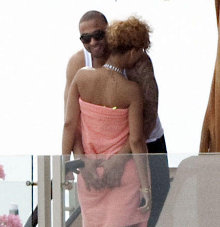 Anh chàng vận động viên bóng rổ Matt Kemp đặt gọn gàng 2 bàn tay của mình lên vòng 3 bạn gái Rihanna khi còn hẹn hò cô