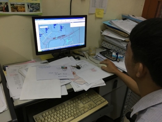 Tìm hiểu thêm những vấn đề có liên quan đến mốc giới mà các bị cáo đã cấp GCNQSD đất cho 8 hộ gia đình, phóng viên đã được cán bộ phòng TN&MT huyện Chợ Đồn cung cấp bản đồ số trên hệ thống quản lý điện tử. Sau khi cán bộ phòng TN&MT áp 8 lô đất vào từ bản đồ số trên.