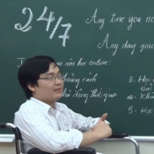 Thầy Hiếu miệt mài giảng bài trên chiếc xe lăn