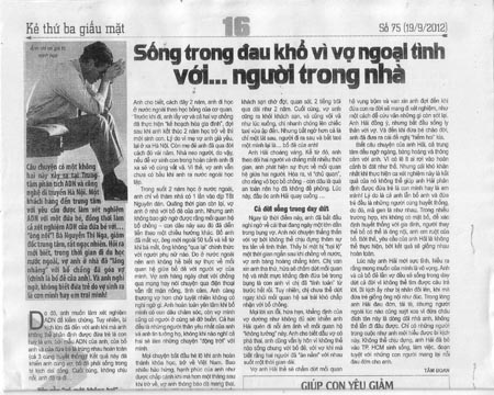 Theo email của người đại diện Trung tâm gửi đến Đất Việt, bà Nga nói rằng bài báo “Sống trong đau khổ vì vợ ngoại tình với … người trong nhà” của tác giả Tâm Đoan đăng trên số báo 75, trang 16 của Báo HN&... ra ngày 19-9-2012 được lấy từ cuốn sách ADN – Những chuyện thật bất ngờ mà bà Nga là tác giả. Tuy nhiên, câu chuyện được tác giả kể ra trong cuốn sách được tác giả để kết luận mở. Từ đó, phóng viên có bút danh Tâm Đoan đã “bịa” nốt phần còn lại để câu chuyện trở nên mùi mẫn.