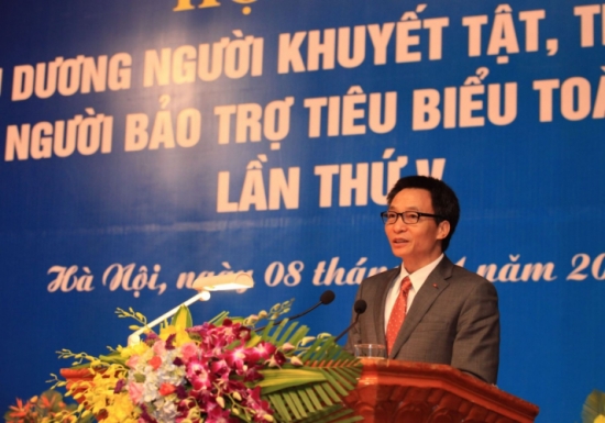 Phát biểu tại Hội nghị, Phó Thủ tướng Chính phủ Vũ Đức Đam bày tỏ sự xúc động khi nghe những câu chuyện về những tấm gương được biểu dương tại Hội nghị. “Các bạn không chỉ có nghị lực, ý chí phi thường để vươn lên hoàn cảnh của chính mình mà sau khi vươn lên còn truyền nghị lực ấy cho những người đồng cảnh, đóng góp lớn lao cho xã hội. Mong rằng ý chí, tấm lòng cao đẹp đó lan toả ra toàn xã hội để những người khuyết tật noi gương các bạn, cùng các bạn khẳng định mình và những người bình thường khác cũng nhìn vào đó để nỗ lực hơn. Như thế chắc chắn đất nước sẽ ngày càng giàu mạnh hơn, tốt đẹp hơn”. Phó Thủ tướng cũng bày tỏ niềm khâm phục những tấm lòng thiện nguyện của những người làm công tác chăm lo cho người khuyết tật, trẻ mồ côi, những doanh nghiệp, tổ chức, chức sắc tôn giáo đã và đang chung tay, chung lòng cùng với Đảng, Nhà nước chăm sóc cho người khuyết tật, trẻ mồ côi ngày càng tốt hơn.