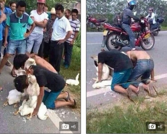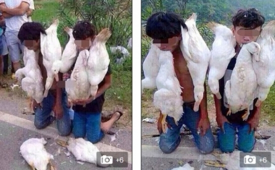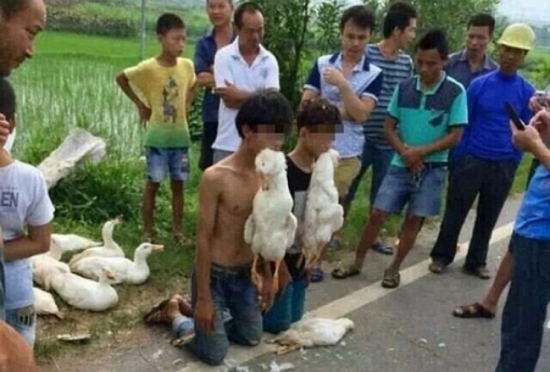 Trung Quốc: 2 thiếu niên ăn trộm bị bắt quỳ và ngậm vịt chết