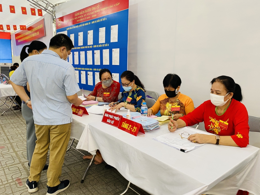 | Hoàng Mai được đánh giá là quận có số cử tri đông, với 286.051 người, trong đó, có điểm bỏ phiếu cách ly tập trung tại khu nhà ở sinh viên Pháp Vân – Tứ Hiệp, với hơn 1400 người. Đối với địa điểm này, tổ bầu cử sẽ bố trí hòm phiếu lưu động để đảm bảo công tác 100% cử tri được bỏ phiếu. Bên cạnh đó, quận Hoàng Mai cũng đã huy động 100% cán bộ chiến sỹ và trên 400 bảo vệ dân phòng tham gia vào phương án đảm bảo an ninh trật tự bảo vệ các điểm bầu cử đại biểu Quốc hội khóa XV và ĐBHĐND các cấp nhiệm kỳ 2021-2026, trong đó có 2 điểm bỏ phiếu, cư dân đông tại khu vực HH Linh Đàm nên 2 điểm bỏ phiếu này được dựng nhà bạt. |
