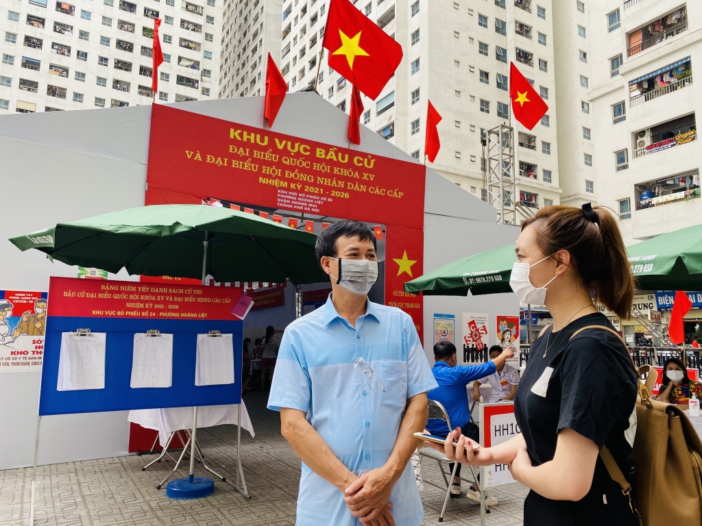 | Cư dân chấp hành đúng luật và thực hiện đúng theo danh sách để phòng chống Covid-19. Bởi trước đó, tổ bầu cử cũng đã chỉ đạo phường Hoàng Liệt có phương án tuyên truyền đến các cử tri, phân chia theo từng tổ dân phố, từng tòa nhà để đảm bảo không tập trung quá đông cử tri tại điểm bỏ phiếu. |