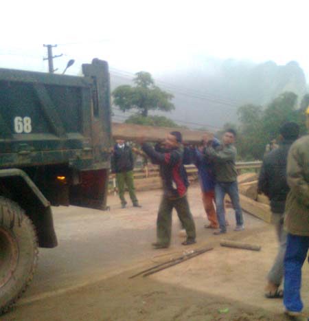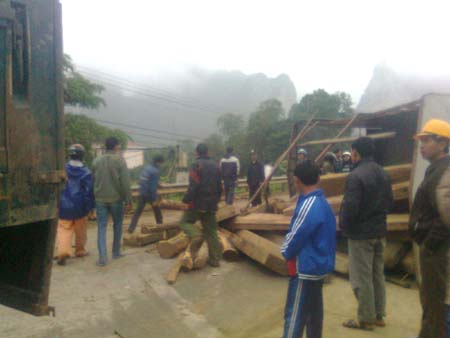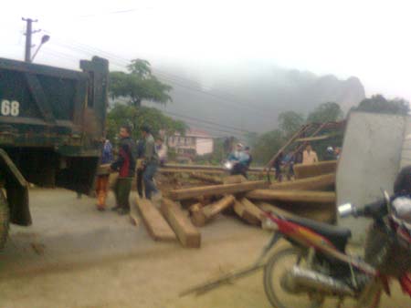 Tại hiện trường, chiếc xe chở gỗ bị hư hỏng phần đuôi, nằm cách vị trí nạn nhân khoảng 200m. Nhiều người dân cho biết, sau khi vụ tai nạn xảy ra trên xe có nhiều gỗ phiến. Thế nhưng sau khi tài xế và phụ xe bỏ đi, có một chiếc xe ô tô khác đã đến, chuyển số gỗ phiến đó lên xe và chở đi, trừ lại gỗ tạp, gỗ tròn. Tuy nhiên liên lạc qua điện thoại với Thượng tá Nguyễn Mạnh Hùng - Trưởng Công an huyện Anh Sơn, ông Hùng khẳng định toàn bộ số gỗ trên xe đã được công an đưa về trụ sở. Ông này này cho biết thêm: "Theo báo cáo của anh em, gỗ trên xe là gỗ xoan đào. Anh em làm đúng quy trình, không có vấn đề gì cả. Đây chỉ là một vụ tai nạn giao thông bình thường".