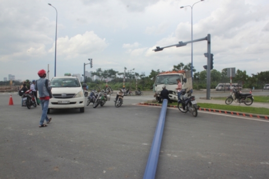 Nhận được tin báo, CSGT quận 2 đã có mặt ngay sau đó để di chuyển chiếc xe tải và trụ đèn ra khỏi đường, đảm bảo lưu thông.